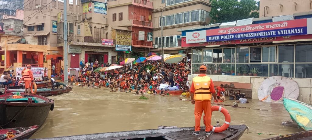 श्रद्धालुओं की सुरक्षा के लिए एनडीआरएफ बचावकर्मियों के साथ चिकित्सीय टीम तैनात वाराणसी. सावन महोत्सव पर…