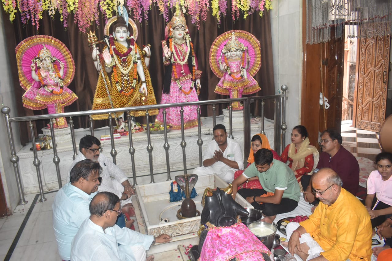 भगवान शिव के जलाभिषेक के लिए शहर के शिवालय सज धज कर तैयार हो गए हैं बड़ी संख्या में शिवभक्त अपने अपने स्थानीय मंदिरों में जलाभिषेक करते हैं श्रावण मास पर भक्तों द्वारा भगवान शिव के शिवालय पर विशेष रुप से अभिषेक का महत्व है आज वामन भगवान मंदिर सदर भगवान शिवालय पर मंदिर कमेटी द्वारा दुग्ध अभिषेक आशुतोष भगवान का मंत्र उच्चारण के द्वारा किया गया किया गया और भगवान शिव पार्वती दरबार को श्रृंगार कर पूजन कर दूध से बने मिष्ठान का भोग लगाया लगाकर महाआरती मंदिर के पुजारी पंडित नंदकिशोर शर्मा द्वारा की गई मंदिर कमेटी के अध्यक्ष मुकेश अग्रवाल कोषाध्यक्ष जुगल किशोर गर्ग महामंत्री समीर खुराना अंकित गुप्ता अशोक मित्तल मुकेश कंसल आदि परिवार सहित इस भव्य आयोजन में शामिल हुए धर्म लाभ उठाया।